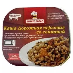 Каша Дорожная перловая со свининой Л4, 250г (Бизнес Повар)Купить Каша Дорожная перловая со свининой Л4, 250г (Бизнес Повар) — по цене производителя 132 руб.. Читать отзывы о товаре, его характеристики можно на нашем сайте. Доставка на следующий день, самовывоз в Москве