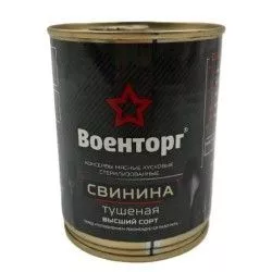 • Свинина тушеная высший сорт, м/б 9, 338 г (Военторг) Купить Свинина тушеная высший сорт, м/б 9, 338 г (Военторг) — по цене производителя 401 руб.. Читать отзывы о товаре, его характеристики можно на нашем сайте. Доставка на следующий день, самовывоз в Москве