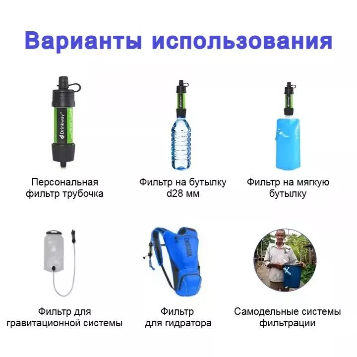 Компактный дизайн в виде фильтра-соломинки, позволяет пользователям легко носить ее с собой на любые мероприятия на свежем воздухе.